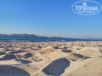 Отдыхали 2 взрослых и ребенок 4 лет с 14 по 23 августа. Прилетели рано утром. Сразу одели браслеты и заселили раньше положенного времени. Номер достался на 3 этаже главного корпуса. В номере довольно просторно и уютно, очень чисто. Уборка каждый день, кроме воскресенья. Оставляли горничным чаевые. не взяли. Питание разнообразное и очень вкусное, готовить греки умеют)). Огромный выбор десертов.Часто замечали в столовой наших соотечественников, купивших путевки без питания. Персонал на это просто закрывает глаза. Так они еще и умудрялись закидывать в свои рюкзаки фрукты и другую еду, наливать в специально принесенные бутылки напитки. Стыдно должно быть, товарищи!!! Дружелюбие персонала просто зашкаливает. По русски не говорят, но очень стараются помочь)). На территории отеля есть 2 бассейна, каждый с детскими зонами, детская площадка вполне приличная. Есть тренажерный зал, но для серьезных занятий не подойдет, хотя. кому они нужны-то на отдыхе)). Пляж в 5-10 минутах ходьбы. и это с маленьким ребенком. По дороге есть пруд с черепашками, которых каждый раз кормили. Пляж отличный, песчаный. Песок белый, местами попадается черный,вулканический. Волны небольшие были только в первый день. Заход в море плавный, что с ребенком очень удобно. Вода чистая и очень теплая. За время пребывания на острове объехали многие пляжи. но этот был лучшим! На него в выходные дни приезжало местное население. Людей на пляже очень мало. Обычно, в радиусе 200-300 метров вообще никого не было. Остров небольшой. На арендованной машине объехали его за 2 неполных дня. Аренда авто обошлась в 86 евро на 2 дня со всеми страховками. Арендовали в фирме напротив отеля. Там есть русскоговорящий поляк Гарик. Он может помочь с арендой и оформлением документов. Прокат велосипедов стоит 1 евро и 3 евро страховка. Комаров и других насекомых особо не заметили, но это может потому, что наш номер был на 3 этаже. Интернет можно поймать только рано утром и поздно вечером. На ресепшене есть стационарный, который стоит 1 евро за 30 минут, но клавиатура только на английском и греческом, так что стоит учитывать. Анимации в отеле нет, но при отдыхе с ребенком это скорее плюс. По пятницам проходит греческий вечер, на котором учат танцевать национальные танцы всех желающих, очень сближает)). У нас был поздний отъезд, но из номера разрешили выехать позже положенных 12 часов совершенно бесплатно. При желании, продление номера стоит 15 евро. Браслеты не срезают, так что пользоваться всеми услугами отеля можно было до отъезда.