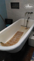 Также к минусом необходимо отнести лечебные помещения, и каким образом осуществляется грязелечение. Мы в разных санаториях побывали и никогда не было такой грязи от грязи))) И кабинки обычно для одного, здесь на двоих и плюс двое кто уже отлежал моются, вам необходимо раздеться полностью и чувствуешь себя как в общественной бане))), девчонки не успевают такой поток намазать и быстро убегая не до конца закрывают шторки, там же мужчины ходят приносящие грязь))). Про жемчужные ванны отдельная такая же интересная история, там правда по одному лежишь. Вода очень ржавая не минеральная, а просто морская, но в море поверьте намного чище)) Смотрите фото.