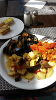 Второй бар и кафе находится на пляже. Там проходит поздний завтрак, днем делают пиццу и можно поесть мороженого. Напитки безалкогольные, пиво и вино, стоит кофейный автомат. С 11 утра выносят крепкий алкоголь.