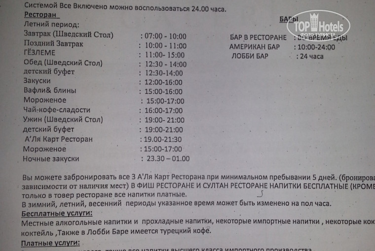 Всем добрый день ) до отеля ехать примерно два часа с одной остановкой в 10мин , приехали в отель в 11 утра ,и нас заселили раньше времени , номер был стандарт на 2-м этаже с видом на соседний отель , внизу кажись хоз-блок тк было слышно как катают тележки , если номера с видом на бассейн то шумно от анимаций , номер небольшой уютный , все было исправно , минибар бесплатный и пополнялся каждый день , WI-FI бесплатный , было три русских канала , сейф платный 2 $ в день ,туалетные принадлежности пополнялись каждый день , полотенца в ванной тоже менялись не пляжные ,на счет уборки в номере : производилась то в два часа то в три дня ,территория отеля небольшая , есть три бассейна один на 0 этаже это где хамам , есть сауна , солевая комната , хамам хороший ,далее где ресторан но он холодный , и с водными горками ближе к снек -бару, про ресторан : еды много , разнообразие есть, как то даже был барашек на вертеле , спасибо поварам , снек бар там с 12-16 фаст фуд , с трех часов жарят вафли , и дают мороженое до пяти вечера ,и еще готовят лепешки , напитки коктейли не понравились , вино только розовое ничего , белое кисляк , анимация есть ,Пляж ; галечный , море прекрасное ,но обязательно берите коралки , лежак конечно можно найти но отдыхающие заранее занимают и не один ,и еще на пляже нет спасателя ,есть смотритель за лежаками но это не спасатель , минусы конечно были хотя мы ехали отдыхать а не искать их ,и еще все же чувствовалось что к европейцам лучше отношение , в хамаме очень навязчивая женщина работает предлагает массаж , иногда из за нее не хотелось ходить в хамам , но в целом отдых удался , езжайте с хорошим настроением )