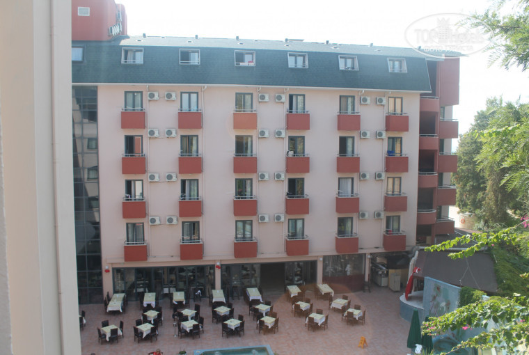 После 12 часов нас заселили в 303 номер в главном корпусе. То, что мы увидели, нас приятно удивило. Очень уютный, чистенький номер, большой балкон, на котором стоял столик и два стула. Большинство балконов отеля маленькие. Единственное, что могло бы омрачить восторг от нашего номера – это вид на соседний отель, но и с этим нам повезло, соседний отель пустовал, поэтому у нас был свой отдельный райский уголок, где нас никто не мог видеть! В октябре в Турции все еще +38, достаточно жарко, если бы не удачное расположение нашего номера, нам пришлось бы пользоваться кондиционером. Номера убирали каждый день, полотенца меняли раз в два дня. Телевизор в номере – это отдельная тема! Расположен он был очень необычно – с кровати экран было не видно, смотреть его можно было только сидя у зеркала в номере или с балкона. Но ведь не телевизор мы приехали сюда смотреть, изредка включали для фона. Кстати, заметили, в тех номерах, в которых отдыхали не русские туристы, телевизор был плазменный, а у нас обычный, старенький. Но это все мелочи. Да, еще, когда один из номеров на нашем этаже освободился, то туда кроме уборщицы пришел сотрудник с ведром краски, чтобы подкрасить стены перед заселением следующих туристов.