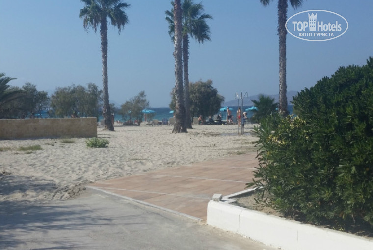 Пляж – песок, заход в море комфортный, для маленьких детишек самый лучший пляж. Глубина начинается метров через 100. Море чистое, очень соленое, практически всегда были легкие волны. Температура воды была комфортная, но все время разная – то более прохладная, то очень теплая. Лежаки и зонты – за деньги. Полотенца можно купить в супермаркете напротив отеля (4-6 евро за 1 полотенце) , под залог полотенца не выдают. На пляже можно поиграть в пляжный волейбол.