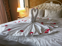 Мы выбрали данный отель для проведения там медового месяца (хоть и длился он всего лишь 4 дня) и ни разу об этом не пожалели! Резервацию делали напрямую через отель по телефону, сразу указали на то, что мы молодожены. За это нам предоставили одно бесплатное посещение А-ля карт ресторана, завтрак в номер, украшение номера, 15 минут массажа спины. Заехали в отель вечером около 20:30. К сожалению, по приезду в отель, резервация у нас, конечно была, но не было отмечено то, что мы молодожены. Мы объяснили ситуацию, что мы делали бронирование по телефону. Перед нами ведливо извинились за сложившуюся ситуацию, сделали нас снова молодоженами и дали, вместо номера с видом на окрестности, номер с видом на бассейн и на кусочек моря)). Так же записали наше пожелание, во сколько мы бы хотели, чтобы нам украсили номер. После этого мы пошли в одел по работе с гостями и заказали полагающийся нам один бесплатный завтрак в номер.