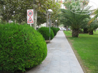 Территория отеля ухоженная и довольно большая (в сравнении с другими европейскими четверками и тройками, в которых мы останавливались). Есть даже мини-зоопарк, возможно с детьми там будет интересно…Несколько бассейнов, с нашего балкона было видно три (еще большой бассейн с «мокрым баром» был с другой стороны нашего корпуса), с разной глубиной, в центральном несколько зон с гидромассажем, которые включались попеременно. Зонтов и шезлонгов предостаточно, много свободных, повторюсь: конец сезона…В бассейны мы так и не попали, море было идеальное и по температуре и по волнам и естественно, только море. Был еще и крытый бассейн,он на «-1» этаже, там же располагаются прачечная с машинами-автоматами, кладовая для чемоданов и душевые ( на тот случай, если у вас поздний вылет есть где хранить вещи, ополоснуться и переодеться в дорогу).