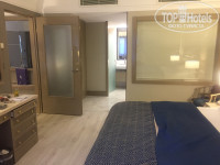 Номер у нас был FAMILY SUITE, двухкомнатный. Сам номер громадный, очень неплохой, с балконом. Убирали хорошо, никаких нареканий нет. Единственно, что очень развеселило, так это то, что в номере отсутствует дверь в ванную комнату, поэтому если будешь принимать душ, то тебя видно от входной двери))) А унитаз «закрыт» от постороннего взгляда матовой стеклянной дверкой, что тоже несколько напрягало.