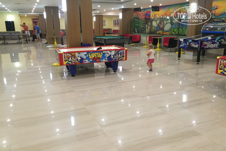 Отдыхали с маленьким ребенком 3-х лет. Есть огромная детская комната и еще и дополнительно развлекательная комната. Хороший бассейн и детское меню на ужин + детская анимация + на пляже небольшая горка детская с качелями + игровой детский уголок в ресторане
