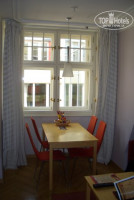 Поселили нас на 7-м этаже в номер с окнами во двор, хотя мы и не просили об этом. Внутренний дворик чистенький, симпатичный, но прямо напротив - окна других номеров. Так что вся наша комната была как на ладони, приходилось постоянно задергивать шторы. Честно говоря, я даже пожалела, что наши окна не выходили на Вацлавку - думаю впечатлений было бы больше, была бы возможность понаблюдать за ночной жизнью города. Прогуливаясь по полуночной Вацлавке, я убедилась, что уровень шума не помешает спать здоровому человеку.