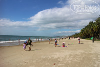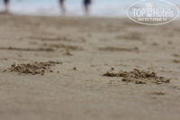 Пляж близко, в 5 минутах ходьбы, но надо перейти дорогу. А китайские автомобилисты вообще не соблюдают правил дорожного движения, пешеходов не пропускают даже на переходах, так что нужно научиться переходить. Мы смотрели, как переходят китайцы, и делали так же. Вообще там никто никого не давит, но все постоянно бибикают, так что поначалу люди пугаются. Это у них такой способ переговоров на дороге. Пляж красивый, песчаный, очень длинный. По нему можно долго гулять. Кроме того, многие бегают по утрам вдоль пляжа. Лежаков нет. В отеле, если повезёт, можно взять коврик, но их мало. Так что все лежали на отельных полотенцах, а потом меняли их. Море тёплое, чистое. По берегу бегают маленькие крабики, размером с ноготь на мизинце.