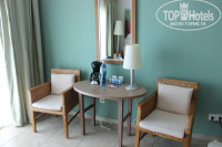 Номер был отличным, все новенькое. Кондиционер, телевизор (русских каналов нет, если кому это важно), гладильная доска, утюг, сейф(бесплатный), кофе машина, кофе, чай, сахар. А вот , кстати, чай мы не поняли как заваривать без чайника. Чайника нет. Может есть схема разогревать воду в кофе машине и мы не знаем? Холодильник, минибар, вода 1,5 (пополнение всего ежедневно, если все использовать). Место для чемодана, шкаф. Шампунь, мыло гель, обычное мыло, шапочка для душа, крем для тела. Если что то заканчивается, без проблем уборщица даст такой же набор. Это все красиво упаковано в сумочке. Фен. Напольные весы.