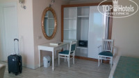 Прилетели спонтанно, увидев 9000руб за 4 дня. Решили, что нам срочно надо на солнышко)). Приехали к вечеру. Где то читала, что в отеле старый потрепаный номерной фонд. Не видела, не знаю)) всегда привожу подарки на рессепшен из России+ улыбка до ушей. Нас с подругой поселили на 3 этаж с видом на бассейн, с огромным балконом и двумя двухспалками. Питание, как и везде, на любой вкус. Едем на море ведь, а мясо в любых вариациях и дома приготовим. Улыбались всем, повар нас угощал на завтрак апельсиновым фрешем. Очень нравилось обедать в снек баре. Лепешки, куриные крылышки барбекю, овощи и Айрааан, вот где обпивались, наливали в бутылочку и в номер в холодильник. Вода питьевая в кулерах, молоко вкусное в ресторане у кофе машин. На ночной супчик ходили. Бар у бассейна работает часов до 2 х ночи, в лобби до 23.00, кстати там бармен хам, называет себя Секси Мэн)))( я вас умоляю), отказался нам сделать чай по турецки. Нас научили- в любой непонятной ситуации, зарвавшемуся персоналу, говорить, что будете жаловаться менеджеру отеля. Волшебная фраза. Чай мухой заварился.)) В общем то, все понравилось. Узкий пирс , тесновато на пляже, двигали лежаки к границе соседнего отеля, чтобы насладиться шумом волн. Пожалели, что не взяли из дома обувь, пляж галька, а покупать ради 4 дней....массировали стопы. Анимация была, не ходили, оценить не могу.