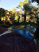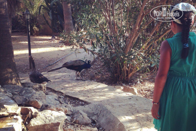 Быстро заселили. Территория небольшая, но ОООЧЕНЬ красивая из-за густой зеленой растительности. Вид с балкона радовал) По территории свободно ходят павлины и цесарки. Есть небольшой зоопарк с утками, курами, кроликами. Финики на уровне вытянутой руки растут) Один большой бассейн, второй чуть поменьше в тенистом месте. Переходили от одного к другому, когда на солнце становилось нестерпимо жарко. Номер приличный. Не убитый) Правда, кондей плохо работал. Гудел.