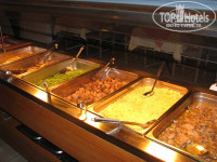 Арбуз, дыня, ананасы консервированные, 2 вида омлета, яичница, яйца вкрутую, творог, огурцы, помидоры свежие, помидоры печёные, 4-5 видов колбасоветчин, бекон, 2 вида сыра, тосты, 2 вида кукурузных хлопьев, хлеб, джем (весьма замечтательный), молоко холодное/горячее, 3 вида сока, 4-5 видов кофе, чай и пр.пр.пр. Блин, что вы дома на завтрак едите, господа-привереды? Терпеть не могу напыщенных врунов и вруних! Дома пельмени "Марьюшка" жрёт и не выёживается, а тут морду воротит, коза... Причём я упомянул меню лишь одного завтрака...