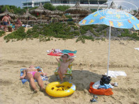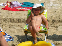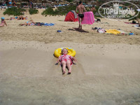 Есть 2 бассейна: взрослый и для малышей. Вода там очень тёплая, но купаться там я лично не стал даже из любопытства. Во-первых, в любом отеле воду хлорируют основательно. А во-вторых - рядом ведь МОРЕ!!! Так, ножками потрогал, а то очередная стервозина где-то плакалась, что, дескать, вода прям ледяная. Ага... В июле. Ну-ну. Для малышей есть пластмассовый домик с игрушками неподалёку от лежаков.