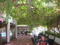 Ой, а прямо над головами в ресторане растёт виноград, свисая гроздьями... Вот повезёт постояльцам в августе... Кстати, от отеля, да и от пляжа ~ 15 мин ходьбы до маленькой гавани (экскурсии)