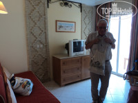 Номер добротный, большой. На окнах настоящие полосатые шелковые шторы!, правда, слегка прихваченные временем. Кровать с кованным изголовьем, картины на стенах, есть диван, телевизор, туалетный столик, балкон со столиком и креслами. За балконом только руку протяни - финиковая пальма с гроздьями фиников). Ванная комната удобная, особенно для женщин так как есть 4 зеркала. И вы можете увидеть свою прическу со всех сторон. Фен, все ванные принадлежности есть.