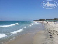 До моря, как и большинство описывали, минут 5 прогулочным шагом. Пляж песчаный, есть лежаки с зонтиками (около 10 евро), но мы их не брали, так как береговая линия достаточно большая, много оливковых деревьев и всегда можно найти место в тени. Само море переменчивое, из 7 дней только 2 дня была абсолютно прозрачная вода, в основном были волны и мутная вода.
