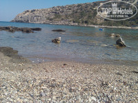 ПЛЯЖИ. До моря минут 10 пешком. Пляжа у отеля нет, поэтому можно расположиться на лежаках за 4 евро или бесплатно на любом свободном месте, на своем полотенце. Береговая полоса почти вся занята лежаками, отдыхающих много. Песок скорее всего насыпной, в море есть участки с камнями, куда лучше заходить в обуви. За горой есть практически пустой и длинный пляж с галькой, совсем как на Черном море. Есть официальный нудистский пляж.