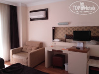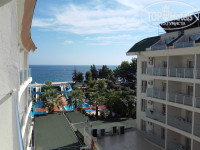 Сперва заселили в номер на первом этаже, но мне он не понравился и я попросил переселить меня в другой. Через два дня толковый Мустафа с ресепшена выдал мне карточку от отличного, светлого и просторного номера на четвертом этаже с видом на горы (в одну сторону) и на море (в другую сторону), претензий к заселению не было. Кормят в отеле вполне сносно, насчет выпивки не скажу, т.к. не пью; правда, кофе был только из автомата, приходилось заливать в стаканчик три подряд эспрессо и один американо - тогда получалось что-то относительно пригодное )))
