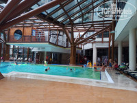 Мы много времени проводили в закрытом бассейне. Хлорки немало, в основном она ощущается в солнечное время - сказывается стеклянный потолок - слишком сильное испарение. Поэтому старались ходить когда пасмурно. Бассейн классный, но пол там скользкий, передвигайтесь аккуратно. В хамаме здорово греться. Стены и крышу в бассейне в самом деле хотелось бы видеть более чистыми-прозрачными. Не то чтобы они были совсем грязными, нет. Это просто минус стеклянных поверхностей - выглядит красиво, но мыть приходится часто.