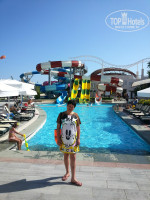 Отдыхали родители. Отель очень понравился. Были уже три раза в этом отеле. Родители Выбирают именно этот отель. Питание очень разнообразное. Сервис на высоте. Ещё что привлекает их(родителей) в этом отеле это сцена и приезжающие артисты. В общем сервис на высоте. Родители советуют этот отель всем своим знакомым. В этом году точнее в мае едим опять именно в этот отель. Заезд (с 20 мая по 30 мая ). По отзывам мамы и папы мы выбрали именно этот отель. (15 человек, в том числе дети). Радует наличие водных горок в отеле.