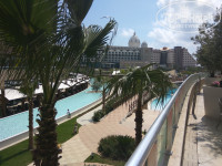 Как все знают(я надеюсь),отель находится на второй линии,дорога к морю и собственно к основному месту отдыха тематическому парку,пешком занимает 5-7 минут,в зависимости от плотности завтрака или обеда,если же нет ни какого желания переставлять свои ножки,к вашим услугам шатлы,которые курсируют очень часто и вторая линия отеля как то не ощущается.