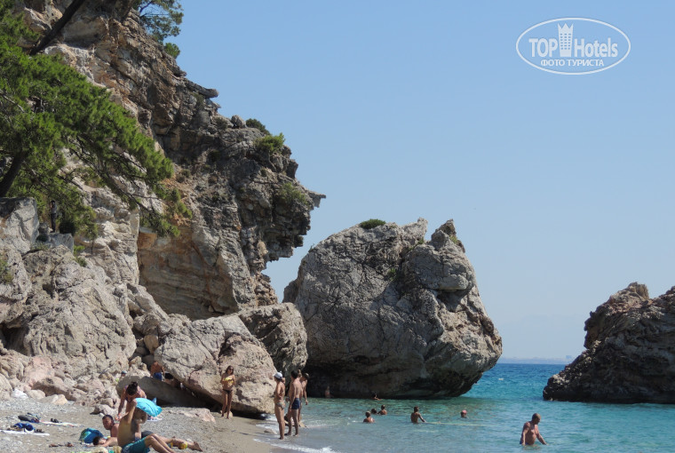 ПЛЯЖ: до пляжа идти пару минут, вход в пляж отвратительный, каждый раз думаешь о том, хоть бы не упасть и не переломать себе ничего, потому что размер булыжников впечатляет, а количество лежаков явно рассчитано на 1/3(если не меньше) проживающих, к счастью, в 10-15 минутах ходьбы есть "дикий пляж", на нем песчаный вход, все отлично, но вот уже разместите вы себя на полотенчике.