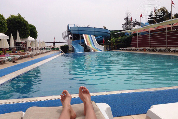 Итак,из-за санкций не были в Турции, но приятно удивила и порадовала эта страна.Разместили сразу по прилету, весь персонал говорит на русском яз., что помогает очень решить ВСЕ вопросы.Еда просто СУПЕР, я не знаю что это за люди, которые пишут , что еда не разнообразная и проч... но три вида мяса - это уже разнообразие для меня, еда очень разнообразная, салаты, оливки, ну, про помидоры и огурцы писать не буду, есть и местная еда - это на любителя, но рекомендую, кто хочет попробовать чего то необычного. Была божественная шаурма из баранины, были с фаршем какие то лепешки (не знаю что это такое, но очень вкусно), долма, голубцы, обалденные баклажаны, тушеные цукини, помидорки начиненные, суп - суперский!!! из курицы - попробуйте, про пироженые и торты - писать не буду, их там просто до фига!!!!!!! фрукты - скудновато: апельсины и яблоки, но, зато на ПОЛДНИК давали и выносили прямо на пляж мороженое и пончики. обслуга реально очень хорошо делала своё дело. Номер: ну, скажу сразу - 3 * не больше, мебель потертая, но мне , честно говоря, плевать какая у меня тумбочка, главное, что дома у меня клёвая мебель)) зато ТВ - плоский и современный и есть батарейки, почему то практически во всех отелях отсутс.батарейки ))) было холодно - попросила на ресепшене одеяло, мне его принесли следом за мной, как я поднялась в номер - умнички. Если рассчитываете на веселые вечера - то ее нет, просто нет, если сам народ собирается, танцует, то, возможно, образуется спонтанная дискотека, но, нам объяснили, что начало сезона - пока нет аниматоров.