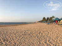 Бар на пляже , много столиков, душевые, Детские батуты, горки. Море чистое утром (с 9-30 и до обеда) прозрачное, тину убирают с берега только утром ОДИН РАЗ ЗА ЦЕЛЫЙ ДЕНЬ! Этого очень мало при таком скоплении травы. Все фото пляжа сделаны в разное время. К обеду она опять скапливаешься на берегу. Мелко, детишек оставлять нестрашно, после обеда отлив и ооочень мелко, до буйков пешком дойти и тина кругом. НЕПРИЯТНО. После обеда все идут по бассейнам..их тут 3(вроде) один прям с баром внутри, там готовят еще вкусные бургеры,пиццу,картофель фри), один бассейн глубокий для больших и в нем для маленьких, вокруг номера кабана, также есть бар с напитками CABANA BAR с 10 до 13 часов и с 17 до 23 часов. Основной ресторан один-Oasis,питание однообразное, очень мало фруктов, практически их нет. Яблоки, бананы, арбузы в нарезке, дыня в нарезке, ананасы консервированные.. Для детишек (моему 5лет) выбора тоже нет. Завтрак: овсянка, 2 вида хлопьев с молоком, омлет, сосиськи, яйца вареные, пару раз были блинчики и картофельные лепешки, сыров 1-2 вида, мясных нарезок тоже 1-2 вида. Обед: все жирное, рагу, тушеные овощи, один вид суп-пюре, ужин рыба,рис... Радовало то, что повар никогда не отказывал, просили многие мамочки для детишек простые макароны или рис-приносили сразу огромными порциями, на этом спасибо. Брать надо "все включено", т.к.цены на напитке все-таки дороговаты (прайс лежал в номере)