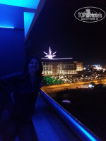 С западной стороны вид на горы, жилые массивы вдалеке и череду отелей первой линии, переливающихся иллюминацией.
