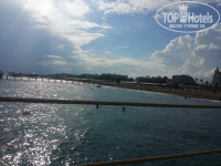 Внизу дорога к нашему отелю и парочке домов на 3 линии. Машин мало ездит, но их слышно, так как спим с открытым балконом. Муэдзина из мечети слышала только на 3 день рребывания ( мечеть примерно в 3км). Комары не залетали ни разу, хотя на пляже парочку комариков видели. Речка не пахнет, иногда рыбаки там ловят рыбку. Кондиционер не включали, так как солнце на балкон попадает только после 16ч. Но и тогда можно на нём найти уголок с тенью для 2 кресел и столика, а белье сохнет на солнышке.