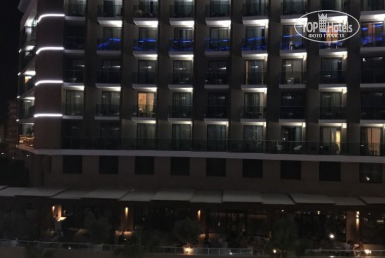 Отель находится на второй линии,с территории отеля до пляжа через каждые минут 5 ходят специальные автобусы,ехать 3 минуты.Если пройтись пешком-10 минут.