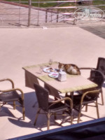 Да, кошки есть, но немного, по столам не лазают, поскольку их гоняют, и столы пустые, потому что официанты все очень оперативно убирают.