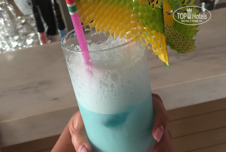 Бар который у главного бассейна где мостик, в другом не были у второго бассейна. Хороший бар, делают различные коктейли очень много. Мы пили мохито, пинна колада, виски кола. Многие пили цветные коктейли. Закрытие в 23:00. Из алкоголя есть все водка, виски, ром, текила, белис, Малибу, пиво, джин.