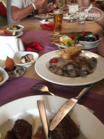 Обед. Супчики кстати не плохие, они как пюре, но вкусные. Томатный суп, куриный, грибной, со спаржей. Всегда рыба причём цельная дорадо, форель радужная, окунь, ещё несколько рыб. Очень вкусно. Рыба в отеле всегда и Ее очень много, основное блюдо она. Мясо практически нет, котлетки, тефтели пару раз были. Печень была. Курица один вид каждый раз и на обед и на ужин. Жарят всегда рыбу, курицу.