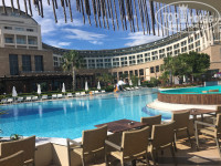 Отель новый, красивый, удобно расположен, великолепный вид почти отовсюду из номеров, нам бесплатно дали номер категорией выше , чем был опоачен( оплачивали супериор с видом на море, дали двухкомнатный сьют) стоимость за 2 недели на троих ( взрослые и один ребёнок-с перелетом бизнес -классом 250 тр) нормально, но! Ребята, для русских женщин важна чистота в номере, я бы свою домработницу уволила после таких уборок. Это нереально, лампа у кровати-красивая, но в пыли, балкон-шикарен, но перегородки и поручни грязные, полы моются на "от....сь" что называется, сиденья унитазов мыли сами, так как перестали доверять персоналу в вопросе уборок, конечно, кто-то скажет "-фигня", но! Мне это было важно, куда не сунься-тут не дотерто, тут не намыто , а тут-вообще забыто, ну, вот как-то так. Еда-отличная, пищевой терроризм наступает незамедлительно, пляж нормальный, единственный минус-зонтики на пляже-лучше бы строили удобные беседки-бунгало, в них удобнее, можно арендовать такую за 75-120 евро с обслуживанием, но оно того не стоило, мы брали-тот же пляж, то же море, беседка короткая-муж не уместился в длину(-2м), ну, в общем это все фантики, на пирсе есть шикарные беседки за 150 евро-но эффект тот же, только повыше, девочки на ресепшн-хорошие-Мария и Алина-совсем молодцы, всегда помогут, хотя я в 2 языка знаю, но для некоторых туристов важно наличие русскоговорящих ресепшн, из минусов-нет бесплатного утюга, есть услуга гладко Платная, но если я привыкла гладить перед выходом-то не вариант, к тому же детской одежды стирать приходится море-едят они не очень аккуратно/это минус, вторая кровать в номере-жутко продавленная и подушки ну очень неудобные-они так туго набиты, что голове просто некуда деться-у меня после домашних ортопедических тут же заболела шея после таких девайсов.нсли что-то не устраивает, то набираете 7777 и присылают помощь, но для меня верхом разгильдяйства стало "забывание в номере моющих средств после уборки горничной", она без глаз? Как это можно было оставить? На самом видном месте, видимо, недостаточно бьют ногами их, уровень должен соответствовать. Очень навязчивый сервис в магазине кожи-обходите стороной, это просто кошмар -проходу не даёт этот чернявенький друг, официанты в ресторане-есть отличная смена-сезар, к примеру, все подаст, ничего не забудет, вовремя принесёт и тд, а есть" глупый молодняк" -вот это реально жесть-мне приходилось ждать мелочей, вина до конца ужина, влажной салфетки ребёнку рот вытереть, ну, так себе. Кстати, для чистоплюев типа меня кошмаром будет осмотр чашек и стаканчиков для чая , которые стоят у тэнов, где кипяток наливаешь, если не просишь принести, а идёшь сам-это реально жесть !-они грязные , да такие, что я их в руки брезговала взять, на мой вопрос и указание-мне ответило, что это все ок!!-все только что из посудомойки, в общем, на мой взгляд лучше мыть вручную, если такая посудомоечная машина. Неприятным сюрпризом стало большое количество турок с семьями , которые приезжают в этот отель, ребят, я на отдыхе и не сильно люблю аборигенов, почему я должна сидеть с ними за соседними столиками? Дайте им отель, где они будут отдыхать без туристов, ну слишком мы разные, не хочу я смотреть на замотанных с ног до головы в страшные тряпки жирных баб и их вопящих отпрысков. И они же ещё на мои короткие платья и обнаженные ноги криво смотрят, да идит