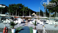 Как таковой, территории у отеля нет. Два бассейна (один с горками), детский бассейн, для деток мини клуб с детской площадкой и маленьким бассейном. Мне очень нравился лобби бар, уютный, с тихой музыкой, красивыми аквариумами и птичками. Пляж галечный, находится через дорогу от отеля (надо пройти через парк). Чистый, шезлонгов хватало; вода, айран, пиво всегда в наличии. Кому что нравится. В первый день заезда на пляже была музыка, потом ее уже не включали, к сожалению. Хотелось бы рекомендовать отелю все же озаботится музыкой и созданием настроения на пляже. Многие стали носить с собой колонки и создавать хоть какой-то музыкальный фон.