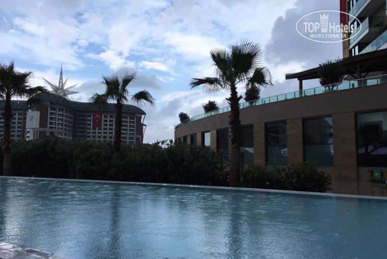 Начну попорядку. Мы приехали вечером,в 20.30 по местному времени Турции. На ресепшене нас встретил молодой человек, сказал оставить сумки и пойти кушать)))))забрал паспорта и оформлял нас пока мы были в ресторане))заселили сразу,номер дали правда с двумя кроватями, мы спустились и сказали что нам нужен номер с одной кроватью, на ресепшене сказали, что такого номера к сожалению нет , но они могут из двух сделать одну, мы сказали что будет неудобно, на что молодой человек убедил нас что все будет ок и если что на следующий день можно поменять)))) сразу же к нам была направлена девушка и с двух кроватей сделала одну,было очень удобно, стыка совершенно не чувствовалось и мы остались в данном номере до конца нашего отпуска))))))номера красивые, чистые, светлые,уборка каждый день, выдаются тапочки, шапочки для душка, ушные палочки, диски, шампуни,гели для душа, кондиционеры для волос и лосьоны для тела)стоит кондиционер,но мы его ни разу не включали так как не было необходимости- днем было тепло , а ночью мы приоткрывали балкон и было очень свежо)Что касаемо ресторанов и еды-все просто прекрасно!!! еда безумно вкусная, выбор огромный,глаза просто разбегаются, ооооочень много овощей в разных видах-вареные,тушеные,на гриле и жарееные,свежие)))вобщем каждый прием пищи мы набирали по огромнейшей тарелке и все сьедалось с хорошим аппетитом))хотя проголодаться мы даже не успевали))) территория отеля очень большая, красивая, ухоженная (!!!!), что очень важно)))))баров полно, на каждом шагу есть что попить,выпить и перекусить)))отдельно зона отдыха(пляжная),куда ходят прям от выходы отеля микроавтобусы, но мы часто ходили пешком,так как совсем недалеко -4 минуты спокойным шагом и вы на пляже) на пляже также есть где поесть, попить и выпить))все очень чисто и аккуратно. Пекуш безумно вкусные лепешки прям на пляже,и выдают мороженое)В отеле очень приветливый персонал,все улыбчивые и добрые) В основном ресторане нас часто обслуживал официант по имени Сельчук)))))везде всё успевал, всегда был внимателен))хотим его отдельно поблагодарить!!!он явно заслужил премию;)))))Первые два дня когд мы приехали до обеда шел дождь и мы посетили спа центр в отеле-сауну,хаммам и парную))так же я сходила на массаж и обвертывание, дороговато конечно обошлось но мне очень понравилось. Отдельное хотим сказать про анимацию-она просто суперская!!!!!!!!!!!каждый день что то новое, зажигательное и интересное)))ходили всегда с большой радостью))) В баре кстати делают различные коктейли -очень вкусные)за 10 дней отдыха 3 раза были на дискотеках,очень весело,единственное (ну это если придираться) хотелось бы слышать побольше русской музыки)))))))в основном включают амерканские и турецкие песни)))под них конечно тоже зажигаешь,но все таки))))Отель полностью семейный, для детей- есть что все угодно, очень много игровых зон - ребенку там будет не скучно это точно!!!у нас пока детишек нет,но точно знаю теперь - с детьми-только сюда ))))))))))Вобщем, отелем мы довольны более чем на 100%, не хотелось уезжать и хочется вернуться)Всем рекомендую-не пожалеете!если будут какие то вопросы-пишите,отвечу всем))))))))