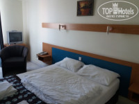 Отель состоит из одного корпуса в несколько этажей, я жила на 3-м с видом на дорогу, аквапарк и полуморе :) У знакомых номер выходил во двор, где со всех сторон соседние отели чуть ли не впритык, поэтому вида там никакого не было, разве только на небо :) В связи с этим и вентиляции никакой там нет, открывай, не открывай балкон - одинаково, ветер не продувает, в номере у них было душно. Благо в каждом номере есть кондиционер, хотя и старой модели, шумный и грохочущий но работающий. Мне им пользоваться не приходилось, так как в начале мая не так и жарко было, да и ветер с моря дул :)