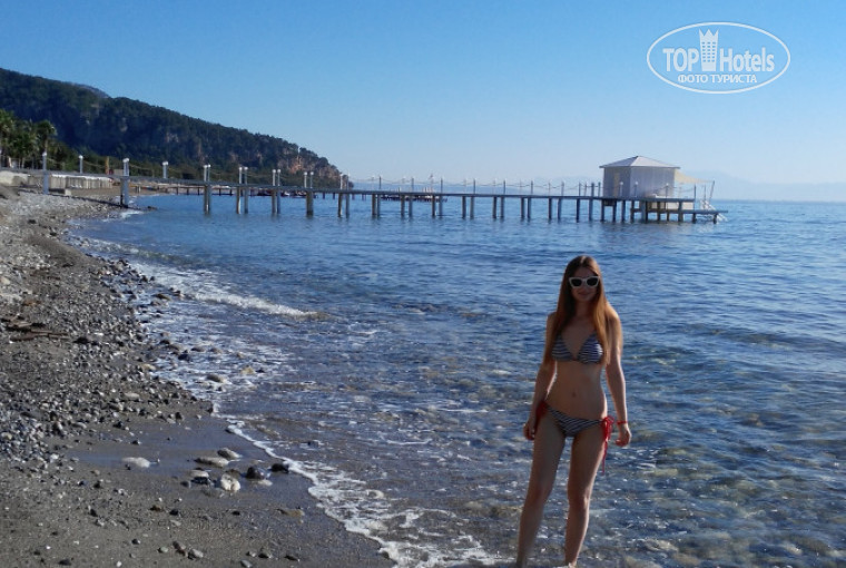 Про пляж. Очень близко, не больше 5 минут ходьбы от отеля. На берегу песок, но при входе в воду огромные камни. Без тапочек очень не удобно. Такой пляж - это особенность всего поселка Бельдиби. Рядом стоит Rixos у него такие же булыжники, на общественном - тоже. Мы ходили на дикий пляж, все туристы почему то зовут его Лагуной) Путь не самый близкий, но гулять полезно. Нужно дойти до конца поселка, пройти сквозь тоннель и сразу свернуть направо. Там не очень удобный спуск, но мы прошли. Место потрясающе красивое! Небольшой заливчик, с обоих сторон окружен скалами. И на берегу и в воде мягкий песочек. Купаться одно удовольствие и фотографии можно красивые сделать)