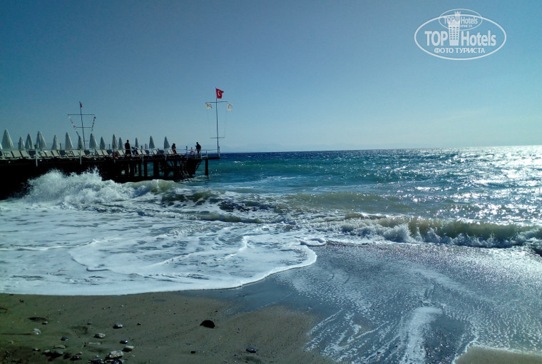Питание в отеле неплохое-была курица в разных вариациях, индейка, говядина, телятина-все вкусное, кроме рыбы-костлявая и откровенно невкусная. Гарниры, холодные закуски, сладости-всего было достаточно, драк, как где-то там писали, не было. Фруктовый стол- куча яблок, мушмулла, арбуз, дыня, апельсин и грейпфрут, три раза за 2 недели была клубника. У меня дети-аллергики, на любую химию в продуктах их обсыпает, так они и мороженое, и соки, и сладости всевозможные ели-ничего не было. В обед можно брать свежевыжатые соки из яблок, моркови и апельсинов. У большого бассейна есть арбузные и клубничные фрэши-можно с алкоголем, можно без. Алкоголь тоже приличный голова не болела ни разу, хотя мы и не особо пили))) Вино в обед подают в бутылке, в баре есть целая куча видов алкоголя, коктейли. В баре на пляже можно брать воду и айран. В баре у малого бассейна есть пиво и орешки, которые с удовольствием ели мои дети. Пляж отеля чистый, постоянно ходят сотрудники, что-то убирают, исправляют. Один раз указала на шляпку гвоздя на пирсе-не успела купальник переодеть, как его уже забили.