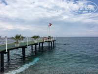 Пляж ,чистый,всегда есть лежаки,есть бар ,пили там кофе ,чай,так же в определенное время можно перекусить ,закуски ,бургеры ,лепешки ,приветливые официанты .Вход в море очень не удобный,сложно зайти и так же выйти ,но есть пирс .