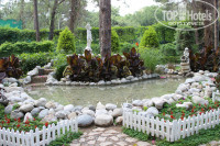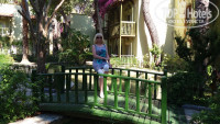 Далее пробегусь немного по территории отеля. Территория домиков теннистая, как в ботаническом саду. Комаров не было, были ящерицы, видели большую даже. Мини-клуб и игровой центр расположены тоже в тени деревьев. Бассейны на солнце. Почему то убрали статую Русалочки из бассейна.( Красивый амфитеатр, у входа и выхода стоят каменные рыцари. Мы очень любили ходить на мини-диско, доченька всегда танцевала с удовольствием под зажигательные песенки. После мини-диско дети шли смотреть мультфильмы в мини-клуб. Из детских аниматоров хочу выделить Юлию. Очень активная и доброжелательная девушка. Из аниматоров для взрослых запомнила только Айзека, он проводил аквагимнастику для женщин. Есть биллиард в Голубом баре, там нам нравилось проводить время перед ужином.
