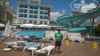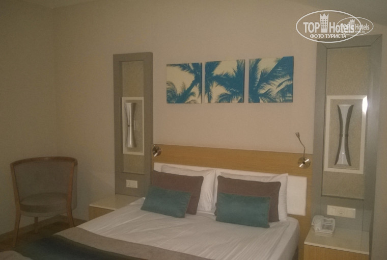 Прилетели с женой 14 часов прошли проверку повезли в отель из Анталии ехать минут сорок заселили сразу из начально дали номер на нулевом этаже номер отличный два телевизора две пары двух местных кроватей но с видом на двор но хотелось бы с другим видом поднялись на ресепшен попросили другой номер работник на ресепшене сказала что отель заполнен но любезно протянула другие ключи номер отличный с видом на улицу зеркальный первому номеру всё ок территория отеля не большая но уютная кормили чудесно разнообразно всегда что то новое и рыба форель .морская мясо два три вида фрукты арбузы дыни абрикосы яблоки турецкая груша апельсины грейпфрут два вида сладости на высоте разнообразие было обслуживающий персонал приветливый инцидентов не было Не далеко пляж можно ехать на специальном автобусе который отходит от отел каждые пять минут можно пройтись пешком шесть минут по очень красивой аллее пляж хороший места всегда есть заход в море песчаный пологий Короче рекомендую этот отель !
