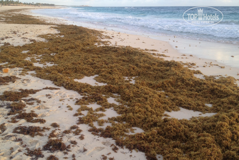 Океан в этом месте неспокойный! Слева так вообще бурлящий постоянно. Из 12 дней только 2 дня был спокойный океан... Я говорю не про прибойные волны, а когда стоишь уже по грудь и идёт огромная волна, что не выпрыгнуть! Только подныривать под неё. Она прям затягивает. 3 раза я так попалась! Потом стала ходить правее купаться. Там где байдарки и лодки. Там можно качаться на волнах, не накрывало ни разу. Если дойти до мыса, там ещё спокойнее океан. Кто плохо плавает и боится волн- этот отель не для вас. Лучше тогда в Баваро. У отеля пляж Арена Горда! На счёт водорослей... Кто тут писал что их нет вообще..? Они есть! В первый день вечером весь океан был в водорослях, на берегу водоросли... На второй день тоже были в воде. Если вы ранняя пташка, можете на берегу их каждый день наблюдать. Часиков с 8 их убирают. Не надо людей вводить в заблуждение, что вообще нет водорослей! Фото в доказательство что они есть.