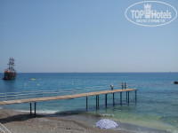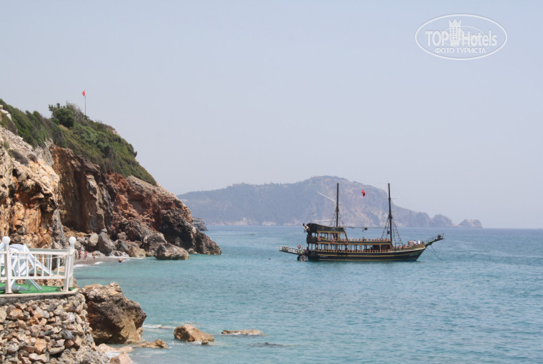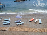 Этот отель в своем роде уникален. Если найти его на гугл мэпс, будет видно, что он отстоит от прочих на приличное расстояние, по факту, отдыхая там, вы не увидите вокруг ни одного отеля. Что очень редко встречается у бюджетных вариантов, на самом деле! Пляж будет полностью ваш, слева скалы, справа гора, отдыхающие только отельные.
