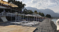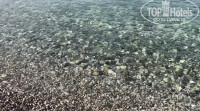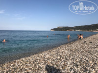 Пляж – галька. Ходить по ней полезно, массаж стоп, но больно. Вода – прозрачная! За это отдельное «спасибо» гальке. Очень понравилась музыка на пляже! И какие прекрасные виды гор! Глаз «отдыхает»!