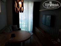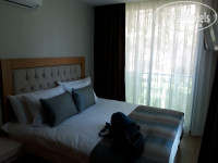 Номера не большие, но очень удобные. 2 небольшие комнаты, все новое. В каждой комнате сплит система и большой плазм. телквизор. Диван раздвигается. Единственный минус это то, что нет балкона. Сушить купальники просто негде.