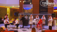 Про отель особо рассказать нечего: ожидаемо за свои деньги, слабенькая пятерка с концепцией "без детей". Анимации нет в принципе (за неделю была только одна турецкая ночь с национальными плясками в холле отеля, порадовал танец живота). Питание слабоватое, особенно в части фруктов и сладкого: за все время лишь однажды была черешня, а так - малосъедобные незрелые арбузы и дыни, стандартные апельсины, бананы; 1 раз за неделю, на турецкую ночь - пахлава дешевая на арахисе, тортики и пироженки очень слабенькие: полусинтетика крем либо печеьки с пропиткой сахарным сиропчиком. Каждый обед и ужин была курица, индейка в разных видах, по вечерам - гриль (в основном индейка, самая вкусная - в виде котлеток). Рыба и говядина тоже всегда были, но только в виде каких-то миксов с морковкой и пр. овощами (тушеными). С гарнирами тоже стандартно - картошка (всегда фри, иногда просто печеная-тушеная), рис, макароны. Понравилась рыба в ресторане на пляже (ассортимент там отличается от основного ресторана, и не только выбором, но и просто другая еда, но там только обед подают, вечером - ужин по записи - типа а-ла карт). Из напитков традиционно для слабеньких отелей употреблять можно без опаски только пиво, при должном безразличии к качеству - вино, ну и из крепкого - ракию. Вместо орешков тут попкорн (практически несоленый и невкусный, но бесплатный). С 16 до 17 у бассейна - мороженое (полусинтетика).