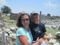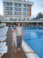 В отель мы приехали в 9,00 ровно через час были в номере на 4 этаже. Персонал всего отеля приветливый, но предпочтение отдают немецким туристам.Питание в отеле хорошее, острой пищи почти нет, из мяса-курица, иногда говядина и несколько раз была свинина в жарком.Из фруктов арбузы и дыни были всегда, персики подавали всего 2 раза за 12 дней, несколько раз были абрикосы и сливы, на то что будет изобилие фруктов не расчитывайте.Мороженое подают с 16,00-17,00 один человек=1 мороженое. Уборка в номере ежедневно, но не всегда хорошо, вода, чай и шампуни должны пополняться ежедневно в номере, но именно на нашем этаже этого не происходило, хотя по распросам у других отдыхающих у них все это пополнялось ежедневно-сделала вывод что это зависит от уборщицы, а они на каждом этаже разные.Анимации нет вообще, из развлечений несколько раз было караоке, и через день были вечерние представления наемных артистов, но т.к. они все начинались в 22,30 мы посмотрели всего 3 из них.Пляж хороший,свободные шезлонги всегда есть, мы часто обедали в баре на пляже, выбор более скудный, чем в отеле, но голодным не останешься. Цены в Сиде все в евро, если едите запаситесь именно этой валютой, если у вас у.е., то в магазинах и на рынке курс 1 евро=2 у.е. Ценники достаточно высокие, но при хорошем торге можно получить желаемую цену, но торгуются не все, особенно рынок вблизи отеля. Экскурсии смело заказывайте у уличных гидов, у отельных в 2 раза дороже. В Античный Сиде рекомендую съездит самостоятельно, остановка маршрутного такси в 2-х метрах от отеля, проезд 1 евро с человека, вход в амфитеатр 20 лир, там же есть рынок на котором большой выбор товаров и продавцы значительно уступают в цене. Общий вывод из отдыха могу сделать, отдых удался.Отель рекомендую для непривередливых отдыхающих.