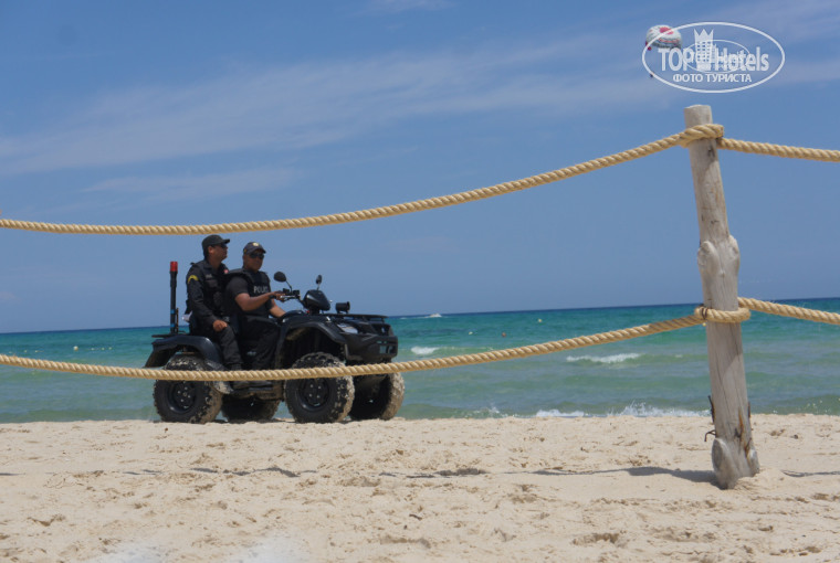 Пляж отличный. Но думаю, что занимать место под зонтом - лучше до завтрака. Места всем не хватает. Пляжные полотенца выдаются под залог 10 динаров за одно. Деньги потом возвращаются. Пляжные работники - ужасные, отвратительные. В пять часов пытаются унести из под тебя лежаки и матрасы с фразой "финиш работа". Никогда с утра не помогут лежак принести. охраняют лежаки немцев (которые им чаевые дают) - хотя мы тоже на чаевые щедрые. В наш последний день, нас с детьми пляжный работник пытался выгнать из-под зонта, который заняли два старых немца, положив на них банное отельное полотенце. То есть, вместо того, чтобы забрать это полотенце (так положено), нас просили удалится. Кстати, немцы пришли в 12 часов... Море само чудесное, в июне не было водорослей и медуз. И мелкое - для деток самое то! И там появились буйки, до 15 июня не было :)